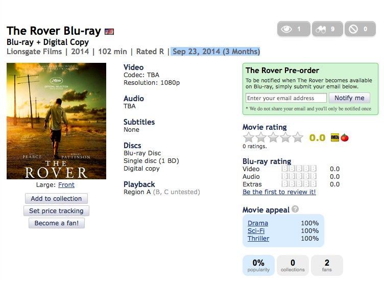O filme já tem data para chegar às lojas em Blu-ray e, provavelmente, também em DVD. Será possível encontrar o novo trabalho de Robert Pattinson nas prateleiras a partir de 23 de Setembro. Lojas como o Walmart já o puseram em pré-venda, custando cerca de $ 17.